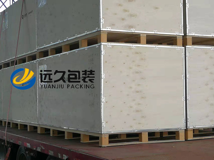 六片式無釘快裝型鋼帶木箱就很好的解決了這個問題,六片式無釘快裝型鋼帶木箱是一種新型包裝木箱,是采用鍍鋅鋼帶并結合舌型鎖扣的特殊結構,將六個膠合板面板組合而成,可折迭、可拆裝的出口免熏蒸包裝木箱。