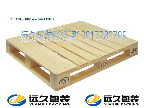 木箱包裝產品不同,任何一款包裝木箱都是根據自身內裝物的尺寸和重量來量身定做的,而歐標木托盤的規格和結構及材料工藝都有一定的標準規定。歐標木托盤的結構只有一種,只能是四面進叉,歐標木托盤規格只有兩種,分別適用于不同的歐洲國家,1200mm*800mm,適用于歐洲大陸,德國,法國;1200mm*1000mm,適用于英國,德國,荷蘭,芬蘭。