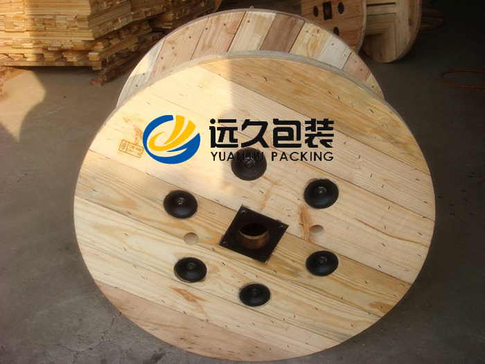 4、釘擋板:將擋板釘在盤軸的兩邊,最終成型,大多數鋼木結構大型電纜線盤都有鋼骨架,看上去是全木結構的,但在鋼骨架外側全部包覆木板,因為這樣結實、成本低。